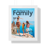Celebrate family adventures with this Personalized Family Holiday Magazine Cover. Crafted with premium LexJet paper and a protective acrylic cover, it immortalizes memories with vibrant pigment inks. Framed in eco-friendly MDF, available in black, walnut, or white, and equipped with hanging hardware. This 11 x 14-inch keepsake is a museum-grade tribute to your cherished moments.