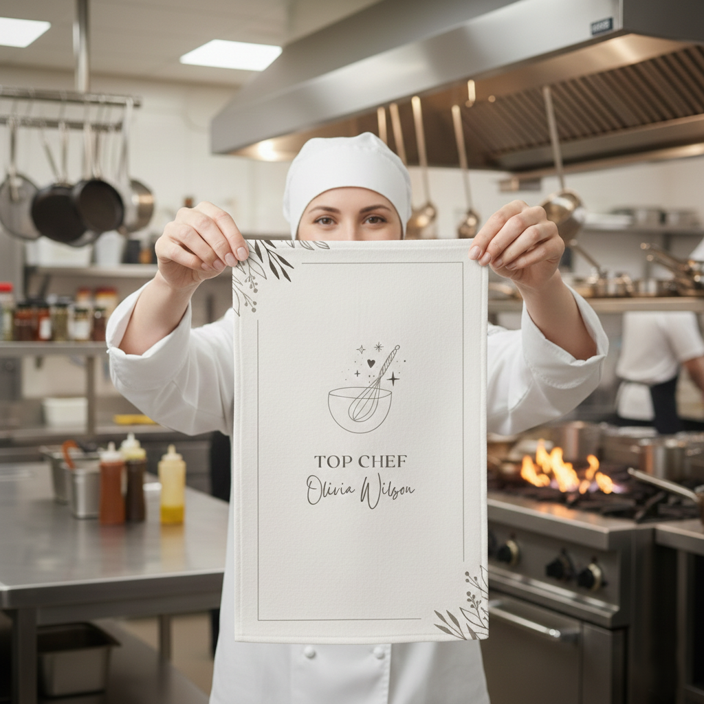 This personalized kitchen towel adds a touch of personality to your culinary space. Crafted from a blend of 90% micro-polyester and 10% polyamide, it's sturdy yet quick-drying. Perfect for gifting or enhancing your own kitchen, it measures 16" x 25" and features a one-sided print.